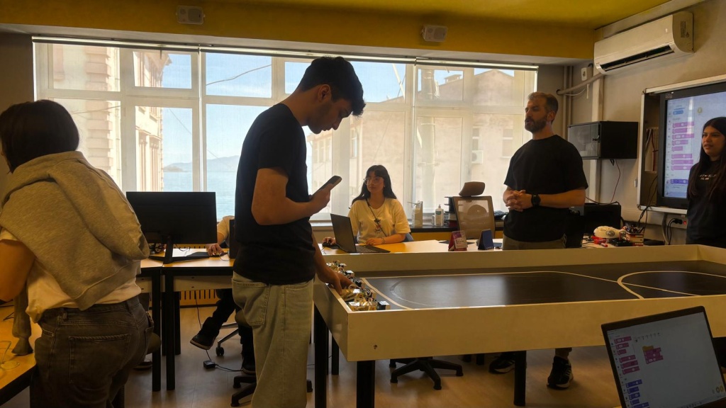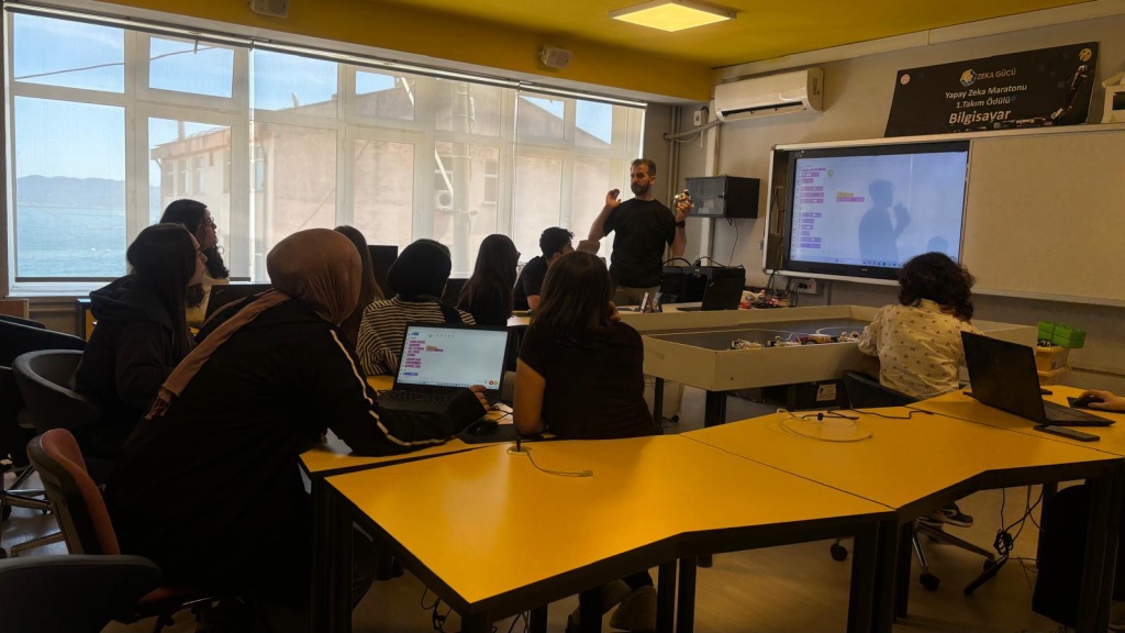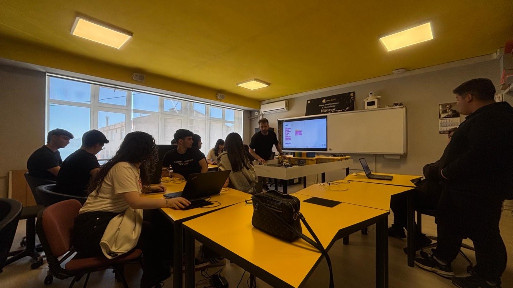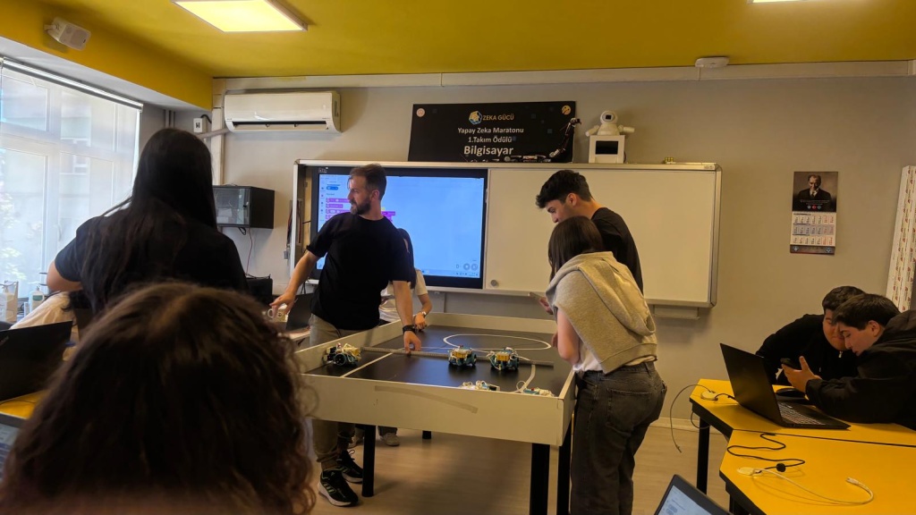 Kodlama Atölyesinde; Arif DAMAR ile birlikte robot araba kodlayarak yarışlar yaptılar. Bilgi, eğlence ve bazı anlarda çok hırslı yarışmalar yaptılar.